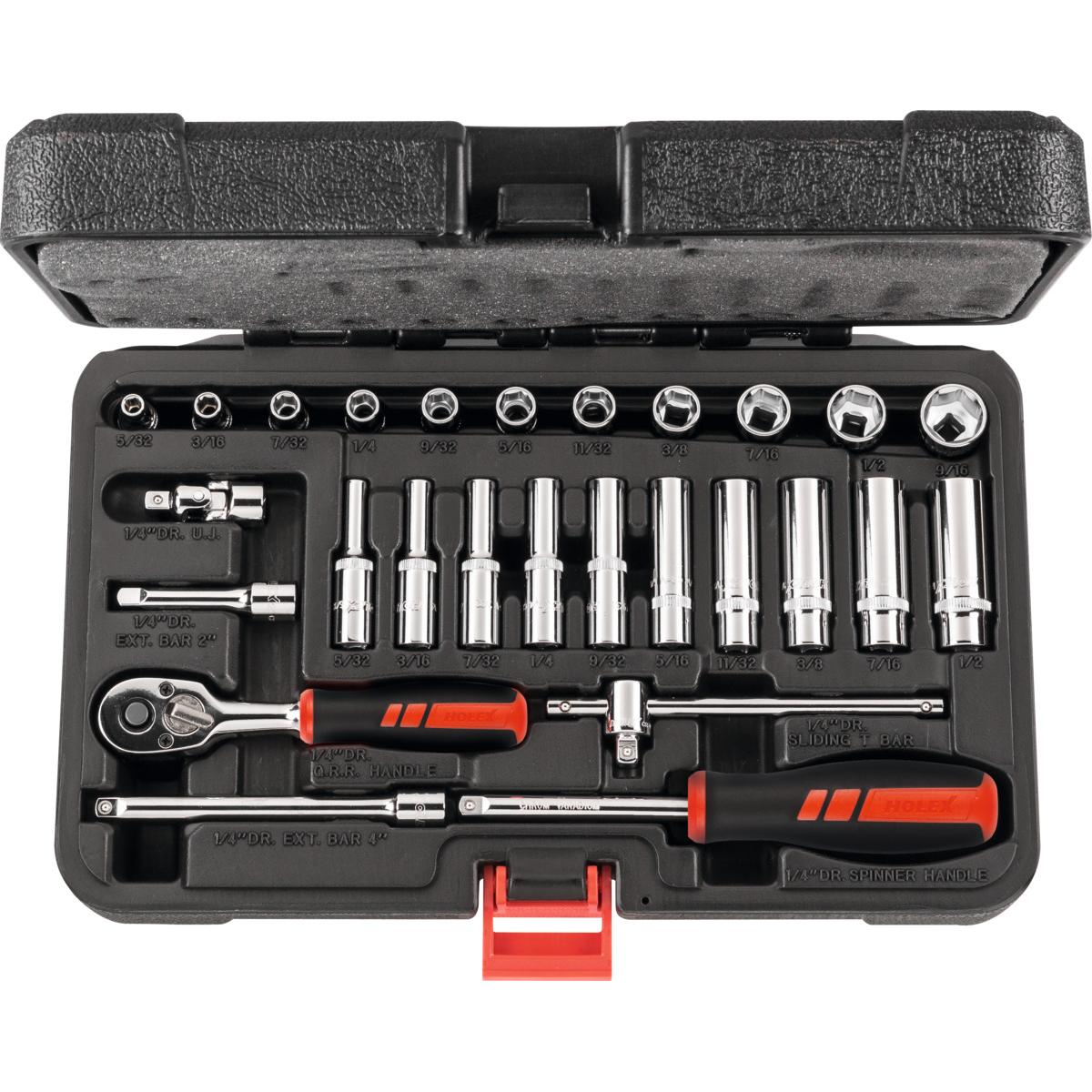 BỘ CẦN SIẾT VÀ ĐẦU KHẨU HỆ INCH 1/4 INCH HOLEX GỒM 27 CHI TIẾT