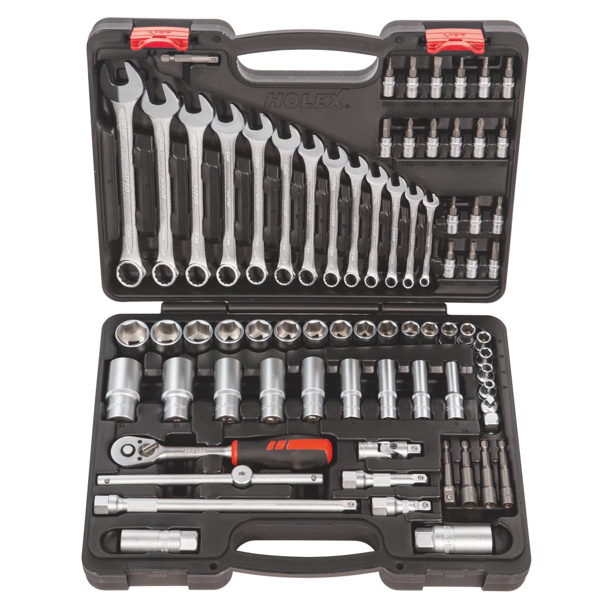 18 sockets 3/8 inch, hexagon 6 – 24 mm9 deep sockets 3/8 inch, hexagon 8 – 24 mm2 spark plug sockets 3/8 inch 16 and 21 mm3 sockets with magnets 6; 8; 10 mm(with hexagon shank E 6.