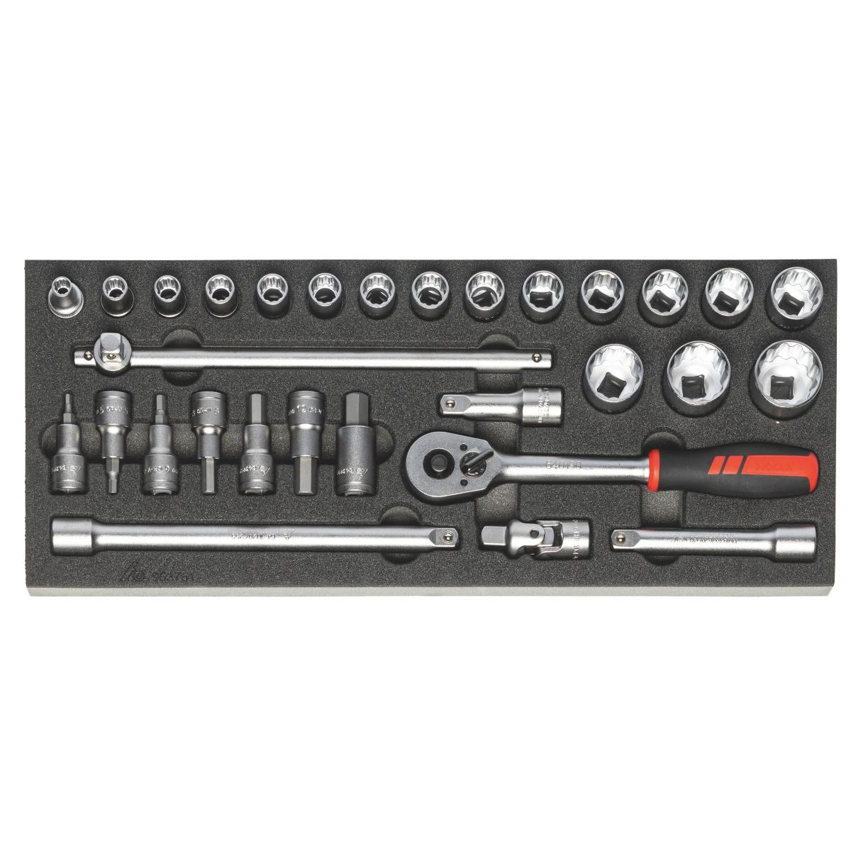 Popular tool sets in two-colour moulded PE rigid foam inlays.