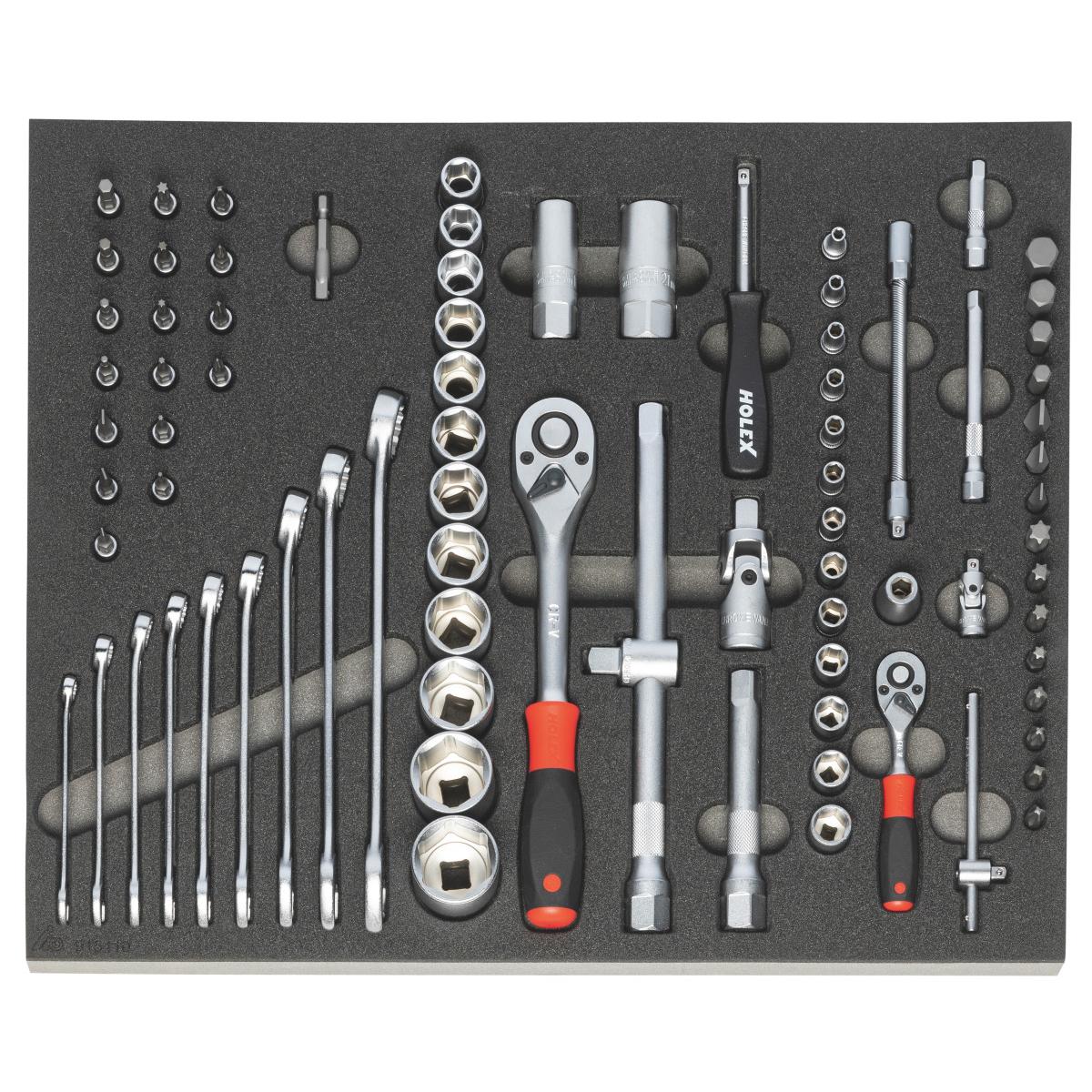 Popular tool sets in two-colour moulded PE rigid foam inlays.
