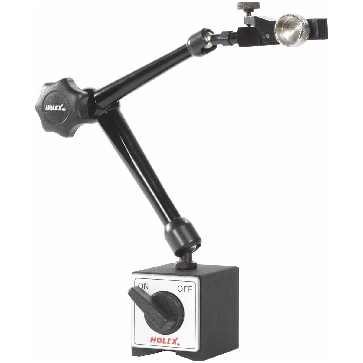 Mechanical magnetic measuring stand with central locking mechanism.