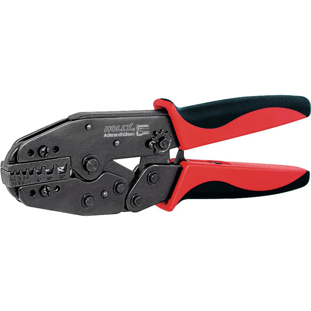 Steel body with compound action. Defined crimping force accurately ensured by integral stop function. Economy version. Terminal sleeve insertion from the side.