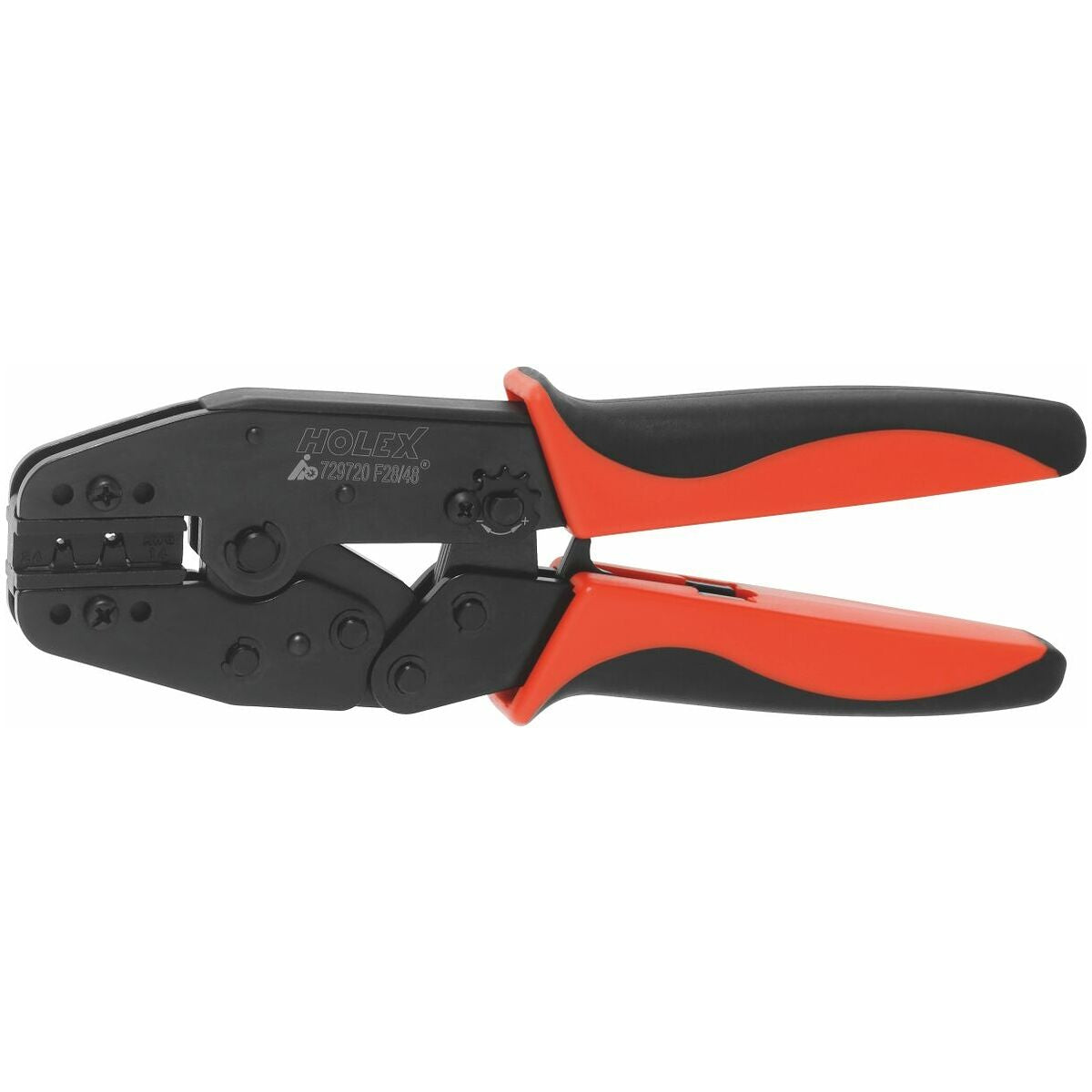 Steel body with compound action. Defined crimping force accurately ensured by integral stop function. Economy version. F48/63 including holder for blade terminals.