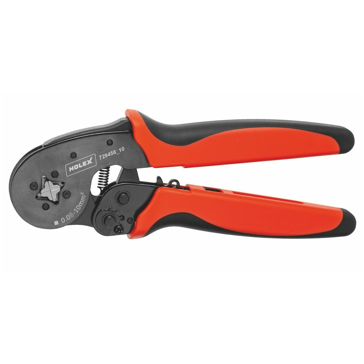 Steel body with compound action. Defined crimping force accurately ensured by integral stop function. Accurate parallel crimping with synchronously actuated crimping jaws. DIN-compatible square crimping = optimum contact areas.