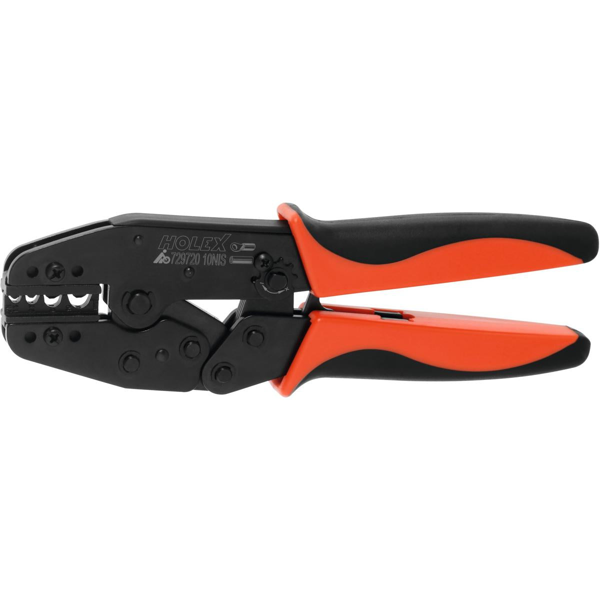 Steel body with compound action. Defined crimping force accurately ensured by integral stop function. Economy version. F48/63 including holder for blade terminals.