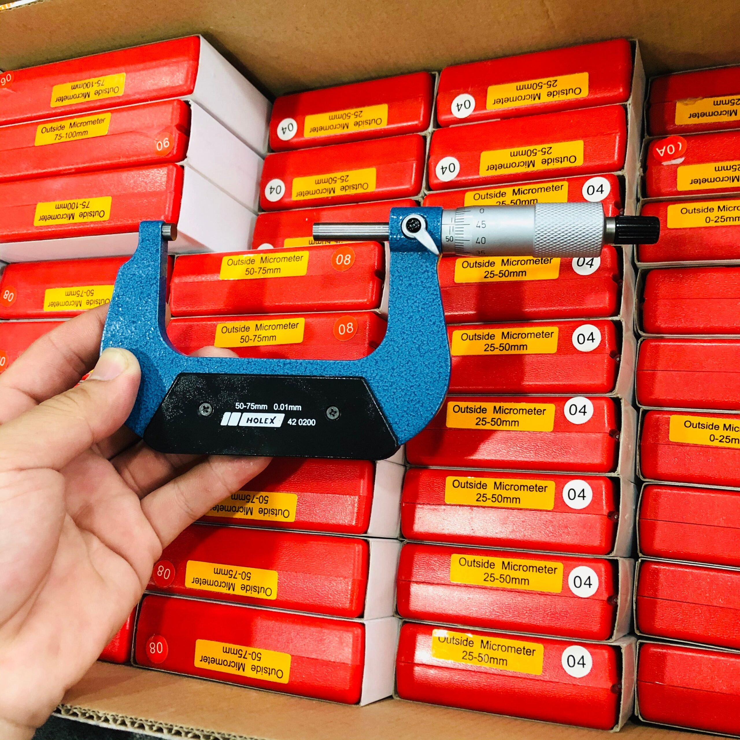 Precision lapped, carbide-tipped measuring faces.