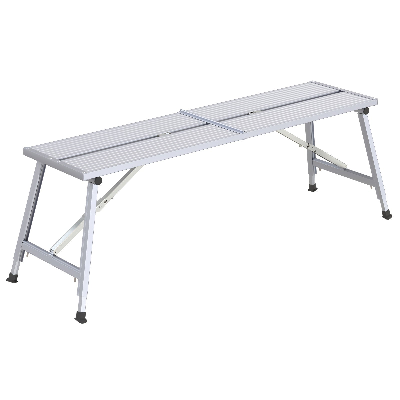 Thiết kế mặt bàn rộng vượt trội: Với mặt bàn rộng đến 40 cm và dài 1.6 mét, thang cho phép người dùng thao tác an toàn, thoải mái và có đủ không gian đặt dụng cụ. Mặt bàn nhôm chống trượt tăng độ bám và hạn chế trượt ngã.